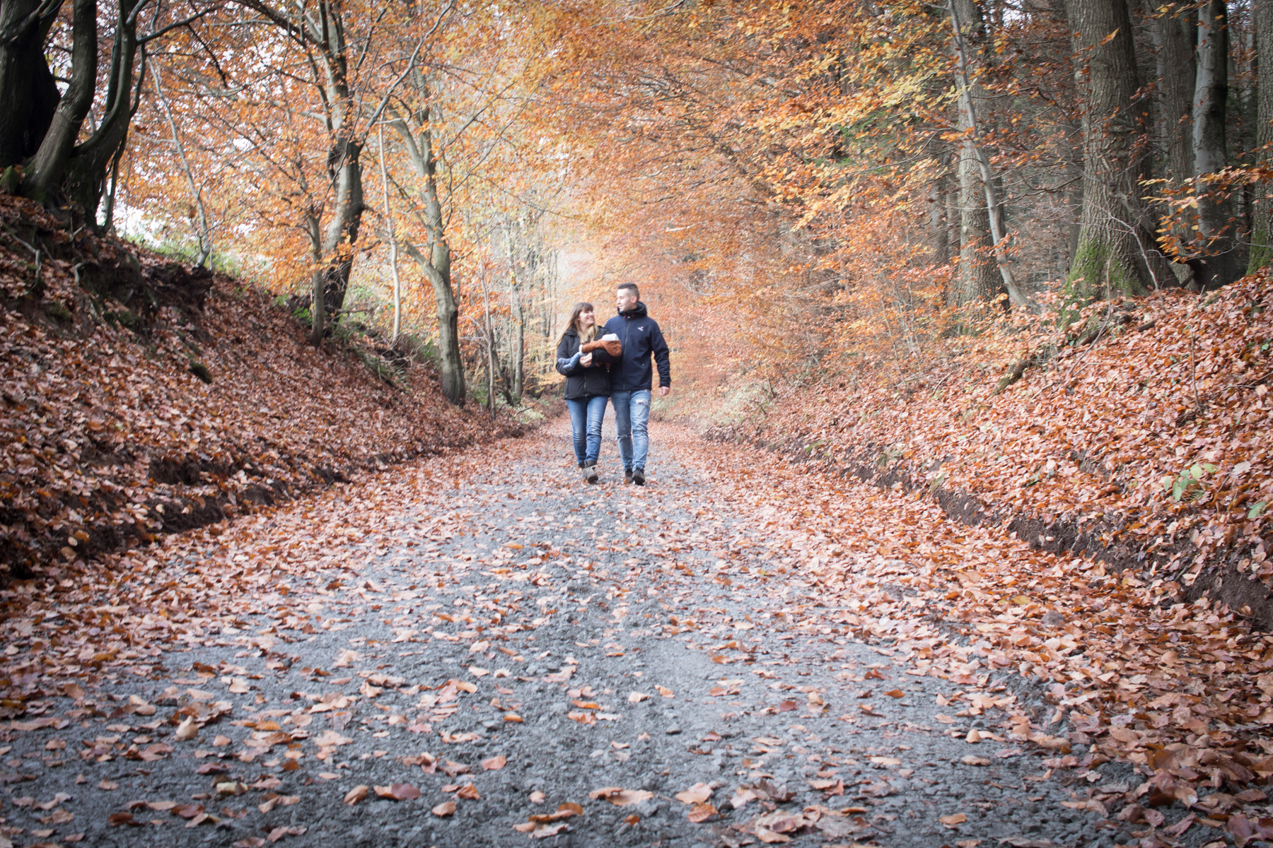 Newborn: Entspannter Herbstspaziergang als frisch gebackene kleine Familie